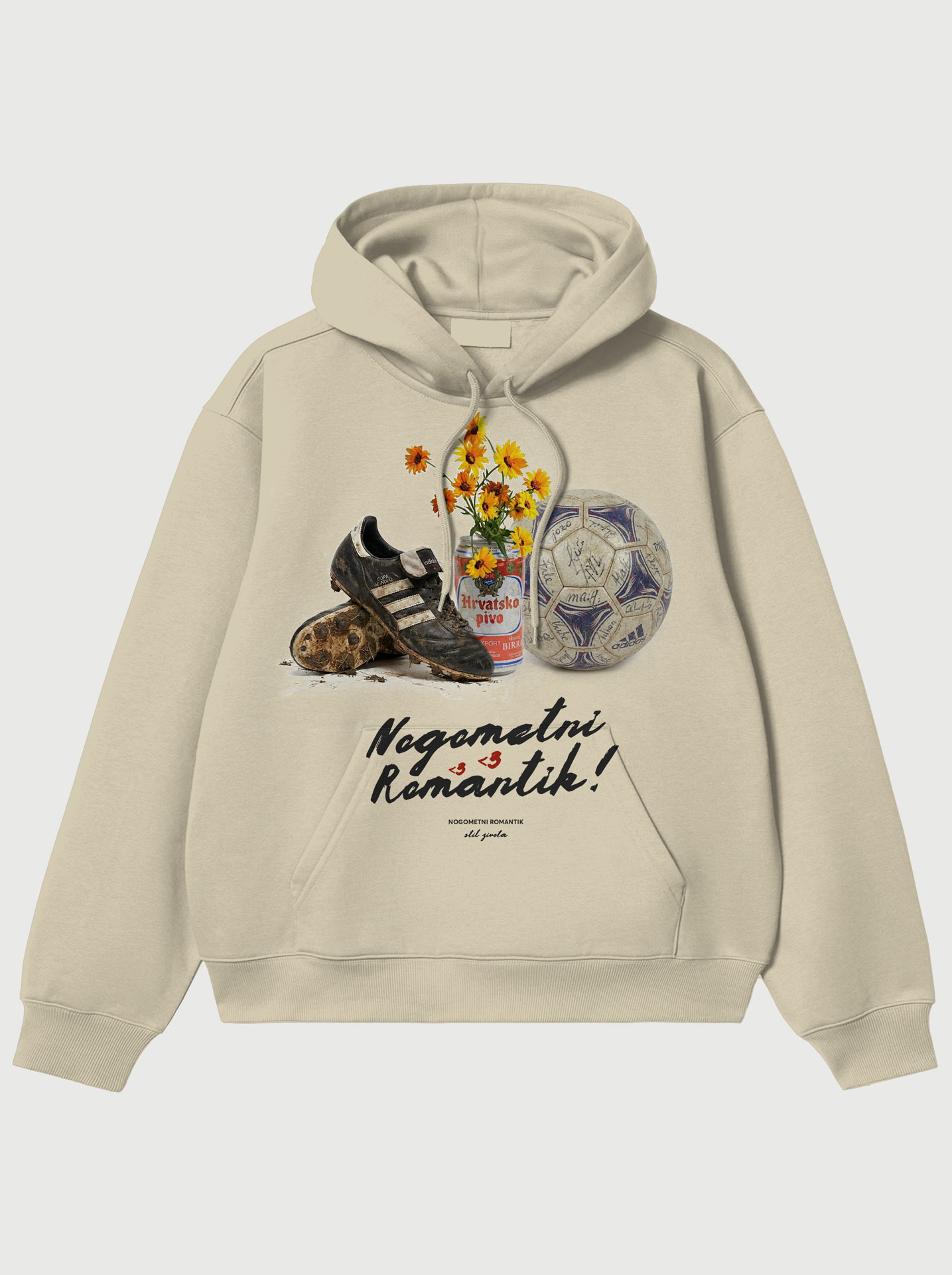 Jer ja sam nogometni romantik, srce mi lupa ko tribina na jugu, još vjerujem da bi igrao u Barci, da nije bio taj trening na šljaku. Nema veze što sam pio previše, i što sad navijam iz birtije, ja sam nogometni romantik — kralj tribine i nostalgije!